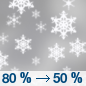 A slight chance of rain and snow showers after midnight. Mostly cloudy, with a low around 25. Chance of precipitation is 20%.