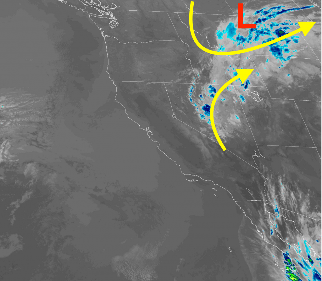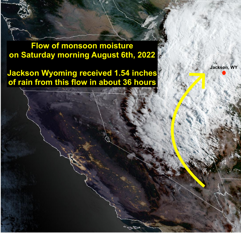 On the satellite image below that monsoon moisture stretched across most of Nevada, northern Utah, western Wyoming and Southwest Montana.