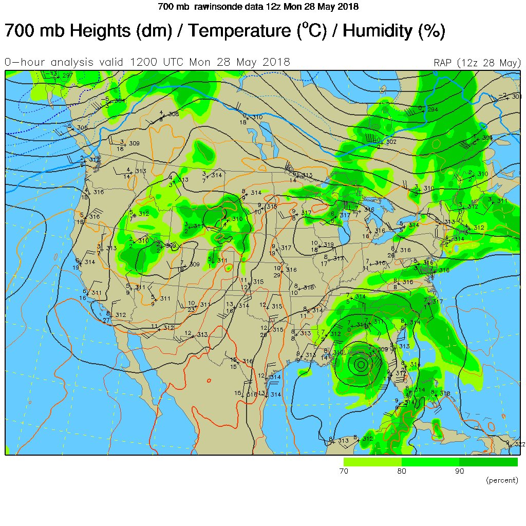 Moisture will still be streaming over northern Wyoming today, Memorial Day, and circulating around that Low-pressure (counter-clockwise rotation) from East to West. Causing more rain & thunderstorms.