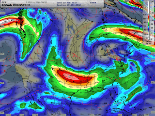 A series of weather disturbances will be moving through this developing Westerly flow, with a Low pressure center hanging around the British Columbia Coast helping to supply colder air, and segments of strong jet stream cycling right overhead, should all add up to being a good longer-term snow producer, from the Cascades to the Northern Rockies.