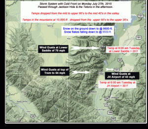 | Summary of Weather Events around Jackson Hole & the Teton Mountains for July 27th, 2015. |