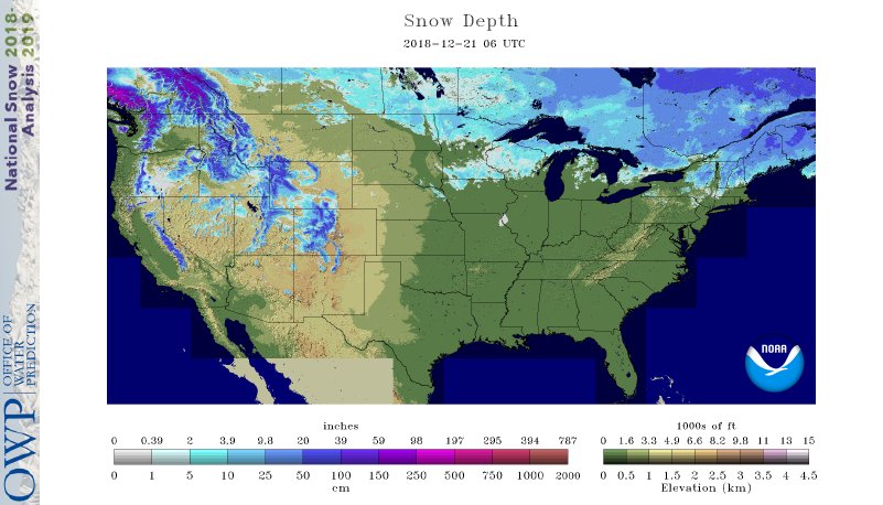 This year on the Winter Solstice there is pretty good snow-cover across the Norther tier of the United States, especially in the northern & central Rockies, the Cascades of Washington and in British Columbia’s mountains.