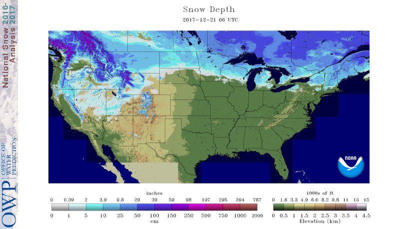 Last year on the Solstice there was more snow at lower elevations across the northern tier of the U.S. But similar depths in the mountains.