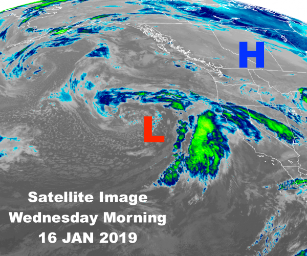 A Low pressure center on the West Coast has been spinning moisture over both Northern & Southern California the last couple of days. Now it is rotating some of that moisture inland in a stronger Southwesterly flow aloft.
