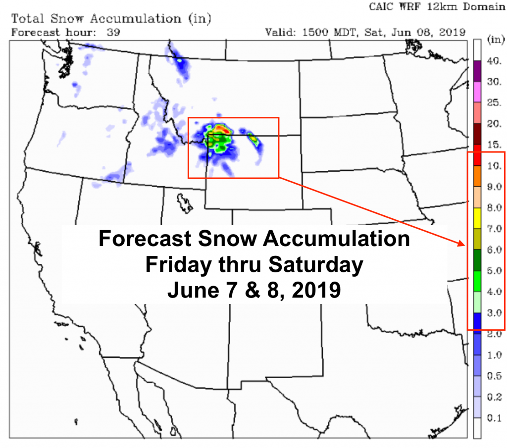 A cold Low-pressure system will be moving across the Pacific Northwest & Northern Rockies Friday & Saturday, June 7th & 8th. This will bring some rain, a few thunderstorms, and a mix of rain and snow to the mountains of Northwest Wyoming. A cold front is currently stalled over central Idaho, but it will progress eastward the next 24-hours.