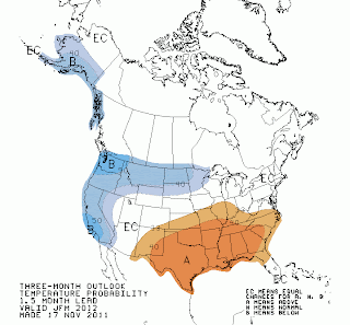 The Farmer’s Almanacs for 2012 will be coming out soon, and there are several versions these days, which each have their own secret formula for predicting the next year’s worth of weather. But if you read them closely, they hedge back and forth to cover a variety of possibilities, and they can be confusing or misleading about what is going to occur. The regional seasonal forecasts don’t always jive with the specifics of the monthly/weekly breakdown.