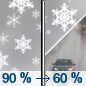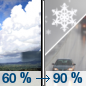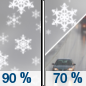 Snow showers before noon, then rain and snow showers likely. Some thunder is also possible. High near 47. Chance of precipitation is 90%.
