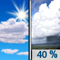 A chance of showers and thunderstorms before midnight, then a slight chance of showers. Mostly cloudy, with a low around 40. South southwest wind 7 to 9 mph becoming east southeast after midnight. Chance of precipitation is 30%.