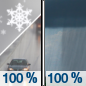 Snow showers before 8am, then rain and snow showers between 8am and 11am, then rain showers after 11am. Some thunder is also possible. High near 44. South wind 9 to 14 mph, with gusts as high as 26 mph. Chance of precipitation is 100%. New snow accumulation of less than a half inch possible.