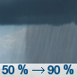 A chance of showers, then showers and possibly a thunderstorm after noon. High near 53. Breezy, with a south southeast wind 8 to 15 mph becoming west southwest in the afternoon. Winds could gust as high as 26 mph. Chance of precipitation is 90%.